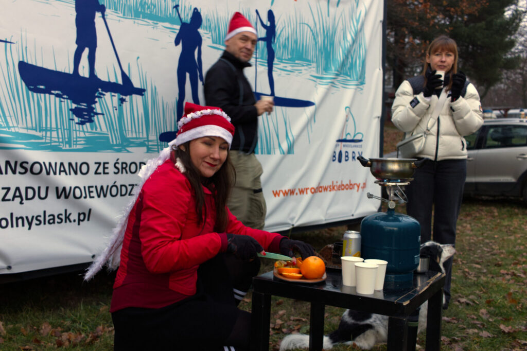 Już od rana Bobrowisko wypełniło się świątecznymi akcentami. Uczestnicy przyszli w mikołajkowych czapkach i innych kreatywnych przebraniach, co dodało całej akcji świątecznego nastroju. Spływ w stronę miasta wyglądał naprawdę efektownie i wzbudzał duże zainteresowanie osób spacerujących nad Odrą.